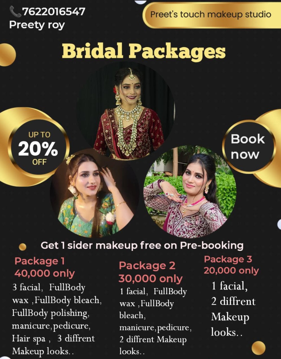 Preety's Touch Makeup Studio, a Certified Makeup Artist with experience of 20+ years in the makeup industry. Allows all makeup lovers whether they want to learn makeup or want to get ready for any occasion in their lives, to enhance their love and skill set for makeup by providing a wide range of makeup courses for students to learn and grow offline. Also, we provide various makeup packages that are available for all the women out there, which they can avail of from the makeup studio in Jaipur. We also have a team of Makeup Artists for destination weddings.