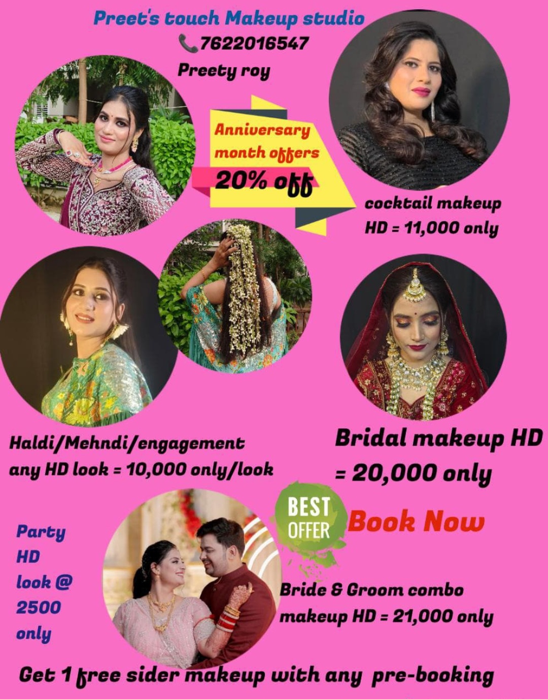 For all those who have been off lately wandering and searching for the best beauty salon and best makeup artist in Jaipur, their search is over. Dive into our luxurious franchise of Preety's Touch Makeup Studio spreading in Jaipur.